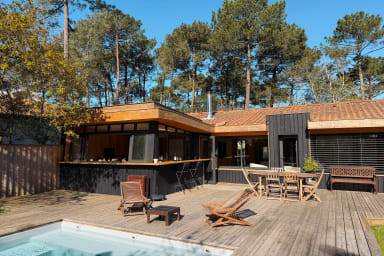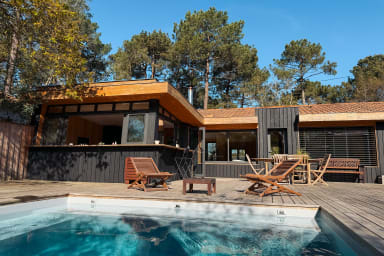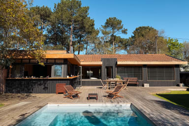 NOUVEAU 2026: La villa Celine est une villa d'architecte, au design typique du bassin d'Arcachon avec son bardage en bois brulé noir .